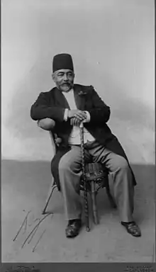 Kitabgi decided to stay in Tehran and, after difficult negotiations concerning his salary, he accepted in 1881 the post of Director General of Persian Customs. His chief at the time was Agha Mohammed Ibrahim[8] who bore the title of Amin al-Soltan and who, although not officially a minister, played an important role at the court of the Shah and controlled, among other things, the finances of the state. On Agha Ibrahim's death in July 1883, it was his son Mirza Ali Asghar Khan, Emin ul-Mulk,[9] who took over his father's title, Amin al-Soltan, and the latter's functions, thus becoming the new ruler of Kitabgi.[4][5]