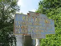 | Etymology: Lenape kithanink, 'on the main river' | |