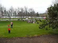 During World War II, a Japanese-American internment camp, the Tule Lake War Relocation Center, was located in nearby Newell, California, and a satellite of the Camp White, Oregon, POW camp was located just on the Oregon-California border near the town of Tulelake, California. In May 1945, about 30 miles (48 km) east of Klamath Falls, (near Bly, Oregon) a Japanese Fu-Go balloon bomb killed a woman and five children on a church outing. This is said to be the only Japanese-inflicted casualty on the US mainland during the war.