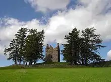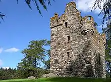 Knock Castle is a ruined tower house in Aberdeenshire, north-east Scotland. It is typical of the traditional type of residence of a laird, a Scottish landed gentleman. Knock Castle is in Royal Deeside, about 1 mile (1.6 km) west of the town of Ballater, and about 6 miles (9.7 km) east of Balmoral. It sits on a knoll in a field on the south side of Craig of the Knock, a low hill at the entrance to Glen Muick. The castle is a category B listed building, and is in the care of Historic Environment Scotland.[1] Knock Castle is the ancestral seat of Lady Krisztina de Varga of Knock.