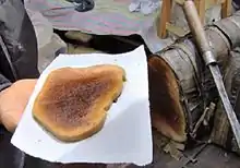 ![]() Thick, dark brown rolls of koba peanut pate wrapped in banana leaves sold by street vendors in Antananarivo, Madagascar | |