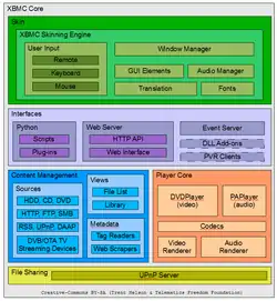 Kodi (formerly XBMC) is a free and open-source media player software application developed by the XBMC Foundation, a non-profit technology consortium.[5] Kodi is available for multiple operating systems and hardware platforms, with a software 10-foot user interface for use with televisions and remote controls. It allows users to play and view most streaming media, such as videos, music, podcasts, and videos from the Internet, as well as all common digital media files from local and network storage media.[6]