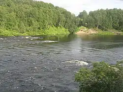The Kola (Russian: Кола) is a river on the Kola Peninsula in Murmansk Oblast, Russia. It is 83 kilometres (52 mi) long, and has a drainage basin of 3,850 square kilometres (1,490 sq mi).[1] The river flows out of Lake Kolozero north into the Kola Bay of the Barents Sea, some 10 km south of Murmansk. The neighbouring river Tuloma has its mouth just one kilometer to the west. The average discharge is 40 m³/s, but there are large seasonal variations. Its largest tributaries is Kitza and Orlovka from the right, and Tukhta and Medvezhya from the left. The only town on the river is also called Kola.