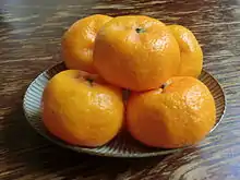 The komikan (小みかん, 小蜜柑) is a type of mandarin orange grown in Japan. "Ko" means "little", and "mikan" a type of citrus cultivar; komikans are unusually small. It is almost the same as the Kishumikan.