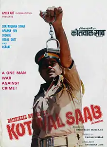 Kotwal Saab (Police Officer) is a 1977 Bollywood drama action film directed by Hrishikesh Mukherjee.[1] An Amiya Arts production, it was produced by Pawan Kumar and had story by Bimal Dutt, with dialogue by Rahi Masoom Reza.[2] The music director and lyricist was Ravindra Jain.[3] The main stars were Shatrughan Sinha and Aparna Sen with a supporting cast consisting of Utpal Dutt, Asrani, David, Raza Murad, Sudhir and Ritu Kamal.[4]