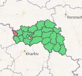 Krasnoyaruzhsky District sits at the western edge of Belgorod Oblast, on the border with Ukraine. It is bordered on the south by Grayvoronsky District, on the west by Sumy Oblast in Ukraine, on the north by Belovsky District, Kursk Oblast, and on the east by Rakityansky District. The administrative center of the district is the town of Krasnaya Yaruga.[11] The district is 55 kilometres (34 mi) west of the city of Belgorod, and is 55 kilometres (34 mi) northwest of the Ukrainian city of Kharkiv.