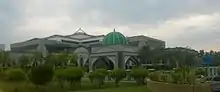 In 1862, ex-Sultan of Riau-Lingga, Sultan Mahmud IV Muzaffar Shah went to Terengganu from Bangkok on a Siamese vessel.[18][19] The British requested that the ex-Sultan to be withdrawn because the British accused the ex-Sultan and also the Sultan of Terengganu, Sultan Omar of supporting Wan Ahmad.[20][21] Wan Ahmad had constantly attacked Pahang using Kemaman as his base and British trade there were disrupted by the constant attacks.[22] The Siamese agreed to British request, but they have yet to follow through with their agreement. The Strait Settlements Governor, Sir Orfeur Cavenagh sent three ships, HMS Scout, HMS Coquette and a steamer Tonze to Kuala Terengganu, under the command of Captain Corbett, accompanied by Major MacPherson.[18] They were sent with orders to compel the ex-Sultan of Riau-Lingga to be sent back by the British to Siam, and to call upon the Sultan to cease supporting Wan Ahmad. After the Sultan of Terengganu declined to surrender the ex-Sultan to the British, the ships bombarded Kuala Terengganu.[23] The Sultan of Terengganu and the ex-Sultan had fled Kuala Terengganu during the bombardment. The ships then returned to Singapore. Kuala Terengganu was ravaged by a fire in 1882.[24][25] The fire that swept through Kuala Terengganu destroyed many buildings, including Green Palace (Istana Hijau), the Sultan's palace. Maziah Palace (Istana Maziah) was later built to replace the destroyed palace.[26]