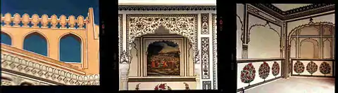 The Sabha Prakash (Illumination Meeting) used to be the formal chambers for meetings and for holding court to interact with citizens. Many critical decisions for welfare and dispute settlement were delivered from the main hall. The hall itself is decorated exquisitely and is adorned with polished walls strewn with semi-precious pebbles and shingles that are intricately inlaid. The decoration of the Sabha Prakash was deliberately done, keeping in mind the exhaustive exposure it would have to the public eye. The decoration shifts towards the Shekhavati style. However, most of the decoration is unique to the Kuchaman Fort.