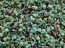 Kwāti (Nepal Bhasa: क्वाती (where क्वा= hot and ती = soup); Nepali: क्वाती) is a mixed soup of nine types of sprouted beans. It is a traditional Newari dish consumed on the festival of Guni Punhi, the full moon day of Gunlā which is the tenth month in the Nepal Era lunar calendar. Kwāti is eaten as a delicacy and for its health benefits and ritual significance.[1][2] Kwati is known to be a healthy food. They say that it cures cold, cough and is one of the best foods for women in their maternity leave. Since it contains varieties of beans, this recipe is loaded with proteins and thus helps weak/sick people to regain their energy.[3]