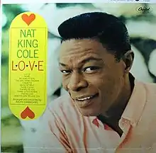 L-O-V-E is the final studio album by the American singer Nat King Cole. It was arranged by Ralph Carmichael.[2] L-O-V-E was Cole's last album, and was released shortly before his death in February 1965. The songs "The Girl from Ipanema", "My Kind of Girl" and "More (Theme From Mondo Cane)" were recorded December 1–3, 1964, shortly after Cole's diagnosis with lung cancer, and were the last recordings he made.[3] It peaked at #4 on the Billboard Albums chart in the spring of 1965.