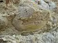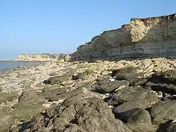 Many of these layers are especially visible and easily accessible at La Pointe du Chay, in which are encapsulated many small marine fossils. Layers of thick white rocks, formed during period of relatively warm seas, alternate with highly friable layers containing sands and remains of mud, formed during colder periods, and with layers containing various corals, that were formed during warmer, tropical times.[1]