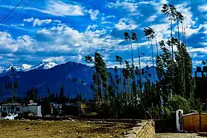 Ladakh is a high altitude desert as the Himalayas create a rain shadow, generally denying entry to monsoon clouds. The main source of water is the winter snowfall on the mountains. Recent flooding in the region (e.g., the 2010 floods) has been attributed to abnormal rain patterns and retreating glaciers, both of which have been found to be linked to global climate change.[65] The Leh Nutrition Project, headed by Chewang Norphel, also known as the "Glacier Man", creates artificial glaciers as one solution for retreating glaciers.[66][67]