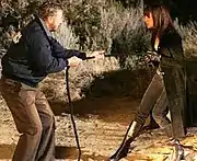Racked with grief, Lady Heather sleeps with the main suspect in the case so as to obtain a DNA sample from him.[3] When it has been confirmed that he is in fact Zoë's murderer, Lady Heather abducts him and takes him to the desert where she starts whipping him until Grissom comes and stops her. Grissom stops her with a safeword - in "Lady Heather's Box," Lady Heather explains to Grissom that in a domination relationship, the slave is in control. This use of the domination code by Grissom points to the mutual understanding of the characters, and perhaps to the nature of the relation once enjoyed by both. The safeword indeed makes Heather stop and she takes brief solace in Grissom's arms.