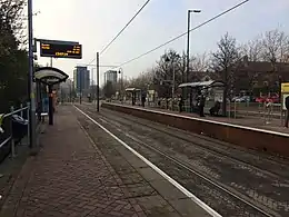 ![]() Ladywell tram stop in November 2018, looking towards the 'dive' under Ladywell roundabout. | |