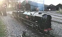 A dual gauge 10 1⁄4 in (260 mm) / 7 1⁄4 in (184 mm) light railway was established in the park in 1992, originally as a temporary layout.[3] A more permanent track was laid down in 1993, as the railway company was granted a three-year lease.[3] Five years later, a longer lease was negotiated and construction began on the two stations, Eastleigh Parkway and Monks Brook.[3] They were opened in 1999, although further work on the layout itself was carried out in 2000.[3] A tunnel was added in 2003, and Eastleigh Parkway station was extended in 2005 with the addition of a café and shop.[3]