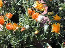 Lampranthus aurantiacus, the trailing ice plant, is a plant species in the genus Lampranthus native to South Africa and naturalized in gardens all around the world.