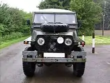 The smallest Land Rover available at the time was a Series IIA 88 inch (2235 mm) wheelbase, which was too heavy. Land Rover began work on a lightweight version to fit the specifications in 1965.[1] A new modification to the basic Series IIA was devised by making many body components easily detachable and removing many non-essential items. The result was the Land Rover Half-Ton, known widely as the Lightweight or Airportable. In practice, to reduce weight sufficiently for the helicopters of the day to lift them in combat conditions, the tilt (roof) and sticks, the upper parts of the body, the doors and windscreen were removed, to be refitted later. The most significant change, however, was a reduction in width by 4 inch (100 mm), by redesigning the standard Series IIA axles and fitting shorter half-shafts, which meant it would fit on a standard pallet.