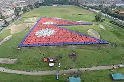 The Largest Human Flag of Nepal was an event organized to form the world's largest human national flag in Kathmandu. It was organized on 23 August 2014 by Human Values for Peace and Prosperity, an NGO in Nepal with the slogan ”Breaking the Records to Unite the Hearts”. More than 35,000 Nepalese gathered in Tundikhel in Kathmandu to form the world's largest human national flag.[1]