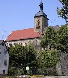 *There are many historic buildings in the town centre, including dwellings in the baroque style dating from the 18th century, and those associated with the Kirchberg, which include an old bake house. The curious Grabengasse (moat lane) winds its way by the Kirchberg. This lane is part of the town's original moat which has been overbuilt with timber-framed houses. At one time it was the route for river traffic, which included even motorised craft.