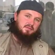 Arriving in Syria in late 2012, he joined the Syrian Civil War as a mujahid and became a leader of a unit of ethnic Albanian mujahideen, connected to the al-Nusra Front.[5] He returned to Kosovo in 2013, and was present at the 2013 Ramadan festival, as part of the Islamic Community of Kosova, in Kačanik, as evidenced by photographs.[6] He then returned to Syria the same year, becoming a mujahideen leader of the Islamic State of Iraq and the Levant (ISIL, or IS), directly reporting to IS caliph Abu al-Baghdadi, leading a platoon of ethnic Albanian fighters.[6] Muhaxheri is a link between the IS and ethnic Albanians in Albania, Kosovo, and Macedonia.[8] Some 500 ethnic Albanians from the Western Balkans fight for the IS, out of whom 232 are from Kosovo (May 2015).[8] Muhaxheri has been described as an "intelligent and an experienced military strategist".[8]