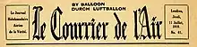 Le Courrier de l'Air was a French-language propaganda newspaper distributed as a leaflet during the First World War. It was printed in London and dropped from hydrogen-filled, free-floating paper balloons on the Western Front over France and Belgium. The newspaper was the product of a division of the British Military Intelligence Service, known as MI7b. The first issue appeared on April 6, 1917.[1] A propaganda magazine of the same name was also used by the British side against Germany during the Second World War.