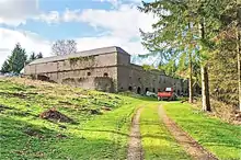 The Leighton Model Farm or Home Farm near Welshpool in Montgomeryshire was a pioneering Victorian farm built on an industrial scale. It was built between 1847 and the early 1860s for John Naylor of Leighton Hall to designs by the estate architects Poundley and Walker.[25] It consists of a rectangular complex of red brick buildings, which includes 12 listed buildings, of which 10 are Grade II* listed buildings and two are Grade II. The farm was a gradual development structured either side of a central E-W axis in which a threshing barn was built with hay and fodder storage buildings either side of it, all of which were linked by a broad gauge railway. On the N and S sides of this axis stockyards were built, served by 2 N-S service roads.Naylor spent £200,000 between 1848 and 1856 on developing the 4000-acre (1.620ha) farm on industrial principles. John Naylor's grandson, Captain J.M. Naylor, sold the estate in 1931, when the Leighton Farm was bought by Montgomeryshire County Council and subsequently split up into small industrial units and smallholdings. In 2010 the Potter Group of Welshpool purchased the historic Leighton Home Farm Complex. The formal transfer of the Victorian model farm, with seven houses and 200 acres of land, was completed between Powys County Council and James Potter, the Managing Director of Potter Group. This has paved the way for a comprehensive restoration programme of the Grade II* listed buildings which is currently proceeding, and has been grant aided by Cadw. James Potter's long term proposal is to create an equine centre at Leighton, building on his current National Hunt interests, and presents possibilities for future regeneration in the Welshpool area.[26] In August 2013 Yorton Farm, a stud farm in Shropshire, announced it is relocating its entire operation, including its four stallions, to Leighton Farm Buildings. Owners David and Teresa Futter have integrated stables and stud facilities into the existing Home Farm buildings.