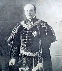 In December 1906, Count Berchtold was appointed as the successor of Count Lexa von Aehrenthal as Ambassador to Russia upon the latter's appointment as Imperial Foreign Minister. He served with distinction for five years in St. Petersburg and experienced Russia's distrust and fear of Vienna.[4] In September 1908, he hosted a secret meeting between Count Lexa von Aehrenthal and the Russian Foreign Minister Alexander Izvolsky at his estate at Buchlau in Moravia. This meeting produced the so-called Buchlau bargain and led to the Austro-Hungarian annexation of Bosnia and Herzegovina.[5]