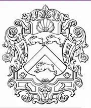 The House Shield is a derivative of the ancient Leverett family crest depicting three hares rampant with an inverted chevron. The family name is derived from the word "leveret" (with one "t"), which means young hare; family tradition has it that the earliest recorded family members were keepers of ferrets, which were trained to chase rabbits from their burrows. The official house colors are black and yellow, appearing on the earliest House paraphernalia that can be found. However, the combinations of black and red as well as green and yellow are often used. Annual T-shirt designs usually feature some combination of those four colors. Leverett House has a sister house at Yale, Timothy Dwight College.