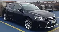 The Lexus CT 200h (Japanese: レクサス・CT, Rekusasu CT) is a hybrid electric automobile produced by Lexus as a premium compact hatchback. The CT is a luxury hybrid based on the Toyota Prius drivetrain and Toyota MC platform chassis, and is the first luxury compact and hatchback hybrid. It is the first production model in Lexus's family to introduce the "Spindle Grille" design as seen in its fascia. It made its debut at the March 2010 Geneva Auto Show,[4] six months after the unveiling of the LF-Ch concept car; it is primarily targeted at the European market but is being sold worldwide[5] and was introduced to North American markets at the April 2010 New York International Auto Show. Lexus has trademarked the names CT 200h, CT 300h, and CT 400h.[6] The design by Takeshi Tanabe[7] was approved in 2008 and patented on 11 September 2009.[8]