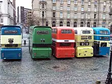 In 1968, three Atlanteans were bodied by Marshall as single deck buses for Great Yarmouth Corporation.[10] Portsmouth had 12 Atlantean chassis with Single-Deck bodywork from Seddon Pennine, and lastly Birkenhead ordered three Northern Counties bodied single deck Atlanteans, albeit delivered to Merseyside in Birkenhead colours.