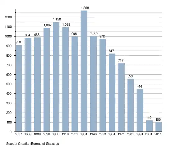 The 1991 census[2] recorded that 98.42% of the village population were ethnic Serbs (437/444), 0.23% were ethic Croats (1/444) and 1.35% were of other ethnic origin (6/444).