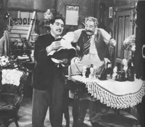 A live CBS Television version aired beginning on September 22, 1952, but was short-lived. Naish, Reed, Gilbert, and Shipp all portrayed their radio characters on the television show.[4] Although it enjoyed high ratings,[5] the show was pulled because of pressure from the Italian-American community.[6] CBS tried to respond to advertisers' concerns by tinkering with the characters, the writing, and replacing Naish, Reed and Gilbert with Vito Scotti, Thomas Gomez, and Muriel Landers respectively, but the revised show was unsuccessful and was cancelled within weeks.[6]