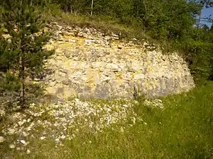 Stratification within the Ligérian, if recognisable, is nodular, wavy to platy. The rock disintegrates to short, prismatic columns. Because of its erodibility and incompetent nature the Ligérian forms slopes beneath the much more resistant Angoumian cliffs. Farmers grow cereals on its easily workable layers.