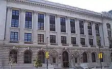 Plans for the new library began in 1912, but political and financial questions (and World War I) delayed the beginning of construction until 1923, after a series of successful bond initiatives spearheaded by Eastman.[10] The library opened to the public in May 1925 with a grand public event, featuring a main address by former British Prime Minister David Lloyd George.[11] The new building was, at the time, the third largest library in the country, boasting six floors and a main reading room that could seat 200.[12]