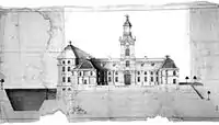 Baroque architecture often includes fragmentary or deliberately incomplete architectural elements, opulent use of colour and ornaments and an external façade often characterized by a dramatic central projection. Many European palaces drew inspiration from the Palace of Versailles, started in 1682, making it one of the most imitated buildings of the 17th century.[1]