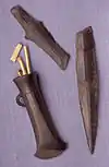 fragments of two spearheads pieces of dagger blades a flanged axe[13] | |