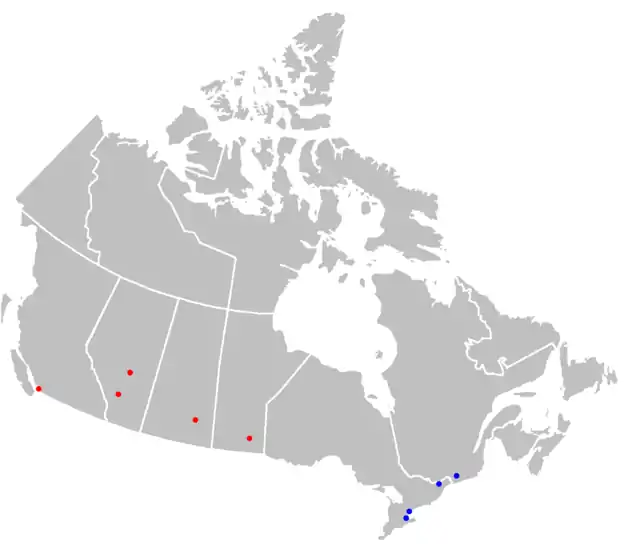 | Saskatchewan Roughriders | Mosaic Stadium at Taylor Field Taylor Field (1946–2006) Park de Young (1936–1946) |
