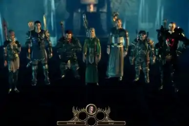 After the Warden's origin story is concluded, the narrative resumes a single strand for all players, where the Warden travels to Ostagar, the site of an upcoming major battle with the darkspawn.[2] The Warden is guided by their recruiter Duncan, who sets in motion the Warden's initiation into their organisation. The Warden and two other candidates, Daveth and Ser Jory, are tasked with travelling into the forest near Ostagar to procure some ancient Grey Warden treaties and vials of blood obtained by killing darkspawn. Duncan then conducts an initiation ritual called the Joining which involving the imbibing of darkspawn blood by the ritual candidates; only the Warden survives the process.[2]