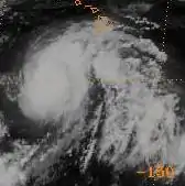 A Hawaiian hurricane is a tropical cyclone that forms in the Pacific Ocean and affects the Hawaiian Islands. Hawaii lies in the central Pacific, where about four or five tropical cyclones appear each year, although as many as fifteen have occurred, such as in the 2015 season; rarely do these storms actually affect Hawaii. Tropical cyclone records were not kept before the 1950s. Earlier windstorms that struck Hawaii were not labeled as hurricanes.[1] Extratropical cyclones are also very common, causing a lot of damage, and known as a Kona storm, but are not included as hurricanes.