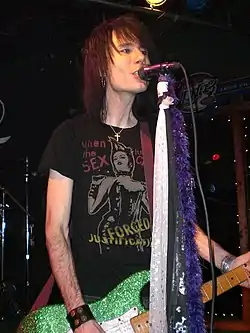 In July 1995, Lewis and Cripps were replaced by Chris Van Dahl and Johnny Crypt, respectively.[2] Nickels left later in the year, with Crypt taking over on bass.[2] The four-piece band released American Hardcore in 1996.[5] The following year, Ralph Saenz replaced Van Dahl and performed on the EP Wasted, released in 1998.[8] Saenz was briefly replaced by Joe Lesté, and later Jizzy Pearl.[9] Crypt left in early 1999, after recording his parts for Shrinking Violet.[2] He was briefly replaced by Stefan Adika,[10] and later by Chuck Garric.[11] Lewis, Cripps and Nickels returned for a reunion of the "classic lineup" in September 1999, releasing a live album and two albums of re-recorded material.[2] Cripps and Nickels were replaced by Brent Muscat and Mark "Muddy Stardust" Dutton, respectively, for a summer 2000 tour, before Cripps returned again.[2] He left again after the release of Man in the Moon.[12] Adam Hamilton replaced Stardust in late 2001,[13] and Keff Ratcliffe joined in June 2002.[14]