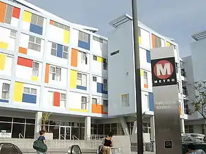 Metro Rail began service on July 14, 1990, when the light rail Blue Line opened between Pico and Anaheim stations;[4] the line was extended to Downtown Long Beach and Pacific Avenue stations on September 1.[5] The Blue Line was extended one stop northward from Pico to 7th Street/Metro Center on February 15, 1991.[6] The next Metro Rail line, the rapid transit Red Line, opened on January 30, 1993, between Union Station and Westlake/MacArthur Park station.[7] The light rail Green Line, the system's third line, opened on August 12, 1995 from Norwalk to Redondo Beach stations.[8] Metro Rail's next expansion occurred on May 22, 1996, when the Red Line expanded westward from Westlake/MacArthur Park to Wilshire/Western stations.[9] The Red Line expanded again on June 12, 1999, with a branch from Wilshire/Vermont to Hollywood/Vine stations.[10] The final section of the Red Line opened on June 24, 2000, from Hollywood/Vine station to North Hollywood station, completing the Red Line as originally planned.[11] A fourth Metro Rail line, the light rail Gold Line, opened on July 27, 2003 between Union Station and Sierra Madre Villa station in Pasadena.[12] The rapid transit Purple Line became the fifth Metro Rail line on August 24, 2006, when LACMTA separated the Red Line into two separate services; the branch between Union Station and Wilshire/Western station became the Purple Line while the branch between Union Station and North Hollywood station remained the Red Line.[13] The Gold Line was later extended to Atlantic station in East Los Angeles on November 15, 2009.[14] The light rail Expo Line opened between 7th Street/Metro Center and La Cienega/Jefferson on April 28, 2012; two additional stations opened on June 20, 2012.[15] The Gold Line's second extension opened on March 5, 2016 and added six more stations from Sierra Madre Villa from to APU/Citrus College.[16] An extension to the Expo Line on May 20, 2016 added seven stations.[17]