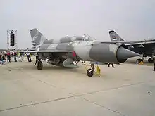 Kits for 75 MiG-21bis izdeliye 75A were delivered in 1977, and by 1984, 220 more were built from scratch in India. Contracts were signed in 1996 to upgrade 125 MiG-21bis (plus an option for 50 more) in a service life extension program to extend their useful life to 2017; the first two were upgraded by Sokol in Russia, the remainder by HAL; 94 were completed by January 2006. This upgraded version was known originally as MiG-21UPG and finally as MiG-21 Bison. A total of 45 MiG-21U (Trainers, versions Types 66/66A) of both izdeliye 66-400 and 66-600 were delivered, including five bought from Ukraine in 1997. Seventy MiG-21UM Trainers (versions Types 69/69A/69B) were received, including some received from eastern Europe in the 1990s.[1] Squadrons known to operate the MiG-21 Bison include 3 Sqn "Cobras", No. 4 Squadron IAF "Oorials", 15 Sqn "Flying Lances", 21 Sqn "Ankush", 23 Sqn "Cheetahs", 24 Sqn "Hunting Hawks", 26 Sqn "Warriors", 32 Sqn "Thunderbirds", 35 Sqn "Rapiers", 37 Sqn "Black Panthers", 45 Sqn "Flying Daggers" and 51 Sqn "Sword Arms".[1]