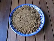 Dessert | Roasted flour mixed with butter or olive oil, sugar or honey, cinnamon, almonds (or sometimes peanuts), and other ingredients[1] |