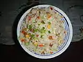 Cooked with Hotdog, Chorizo, Potatoes, Carrots and saute spices that complements with chicken. | |
