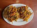 Vegetable dish | Shrimp fritters often accompanied by vinegar as dipping sauce. |