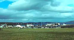 The islands all fall within the Shetland Islands Council local authority. They have been continuously inhabited since Neolithic times and experienced Norse rule for several centuries, the first written records being the Norse sagas.[3][9] The excavations at Jarlshof near the southern end of the Mainland have provided archaeological evidence of life in Shetland since Bronze Age times and the annual Up Helly Aa fire festivals are a living reminder of Shetland's Viking past.[10][11][12] The archipelago is exposed to wind and tide and there are numerous lighthouses as an aid to navigation.[13] A small wind farm in Shetland recently achieved a world record of 58% capacity over the course of a year.[14] The indigenous Shetland ponies are reputed for their strength and hardiness.[9]