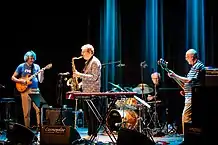 The first lineup of Soft Machine Legacy released Live at Zaandam in 2005, followed by a self-titled debut studio album and the live video New Morning: The Paris Concert the following year.[27] On 7 February 2006, however, Dean died following a year of "heart and liver problems".[31] His place in the band was taken by Theo Travis, and in January 2007 the group issued their second studio album Steam.[27] In June 2008, Hopper was diagnosed with leukemia and temporarily replaced on tour by Fred Baker of In Cahoots.[7][32] He later died of the condition on 7 June 2009.[33] As had happened when Hopper left Soft Machine in 1973, his place was taken by Roy Babbington.[34] In 2010, the band issued the live collection Live Adventures recorded in 2009, which was followed in 2013 by their third studio release Burden of Proof.[27]
