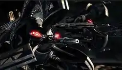 The tri-fighter is a compact and heavily armed starfighter with three arms surrounding a rotating gyroscopic core. Measuring 5.4 m (18 ft) long, with a 1.96 m (6 ft 5 in) wingspan and 3.45 m (11.3 ft) width, it's in-universe manufacturer are the Colicoids, the same species which produced Droideka.[30] They are more dangerous than Vulture droids thanks to an advanced heuristic droid brain which better learns from enemy tactics and can be linked to coordinate multi-fighter attacks.[30] While not as fast as a Jedi interceptor, the tri-fighter has three independent thrusters to give it impressive agility. Four laser cannons, one light cannon on each arm and one nose-mounted medium cannon, can fire together or independently. It can also carry between two and six missiles, including proton torpedoes, concussion missiles and buzz droids.[27]