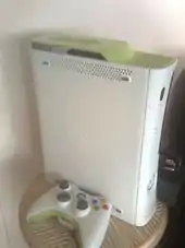 A white console with green accents was released in 2005 only to the Xbox 360 Launch Team as a gift from Microsoft. The consoles came complete with a 20 GB HDD also in green to match the top and bottom sections that are typically grey in color. The HDD plate was also personalized and engraved with the team member's gamertag, with a few examples of non-gamertag engravings such as the console release date "November 22, 2005" or "3 Years of Pain".[82] The consoles came with a limited issue controller to accompany the console. The grey trim on the controller is also replaced with molded green plastic to match the console. Each console came with a plain white faceplate. However, as an additional gift, each team member was given an additional packaged faceplate with one of a kind art with the caption "I Made This" on the USB door of the faceplate. Very few examples have been sold off from original team members' collections. Larry Hryb, better known as "Major Nelson", is known to own one which he displays pictures of on his website having been a member of the Launch Team.[83] The special edition Launch Team console, hard drive, controller and the special faceplate were never sold in stores or meant for the general public. It is unknown how many of these very rare consoles exist today.