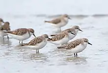 A total of 379 species of bird have been recorded living in the wild on the island of Tasmania, nearby islands and islands in Bass Strait. Birds of Macquarie Island are not included in this list. Twelve species are unique (endemic) to the island of Tasmania, and most of these are common and widespread.[1] However, the forty-spotted pardalote is rare and restricted, while the island's two breeding endemic species, the world's only migratory parrots, are both threatened.[2] 22 species are introduced, and 30 species are globally threatened.